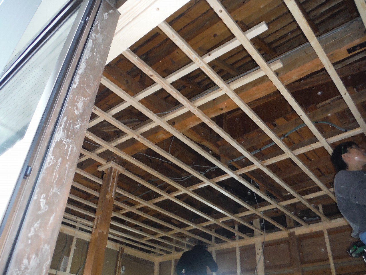 耐力壁等構造部材の変更が無いように改修工事を進めていき、