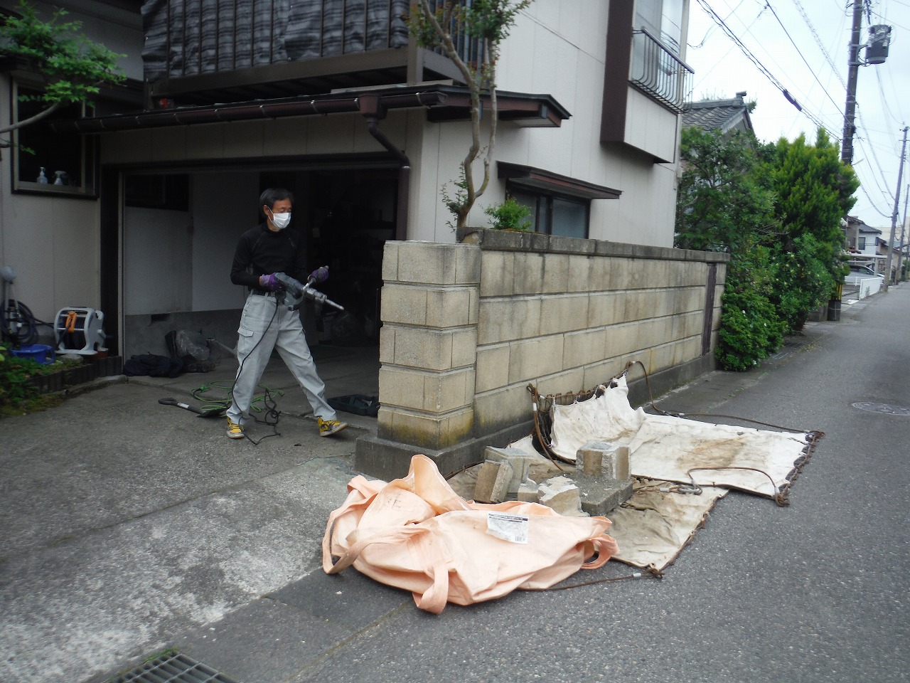 外部は倒壊しそうなブロックの解体、